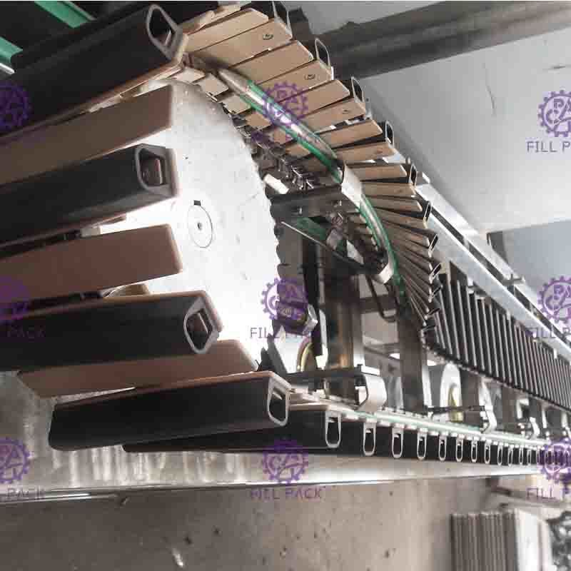 Машина для реверсивной стерилизации бутилированных соков в основном состоит из основной цепной конвейерной системы, стойки, направляющей штанги для переворачивания бутылок и штанги для перепозиционирования бутылок. Использует внутреннюю тепловую среду для дезинфекции горлышка бутылки и крышек без какого-либо другого источника тепла, что позволяет экономить энергию. Машина полностью изготовлена из нержавеющей стали SS304, что делает ее более удобной в эксплуатации.
